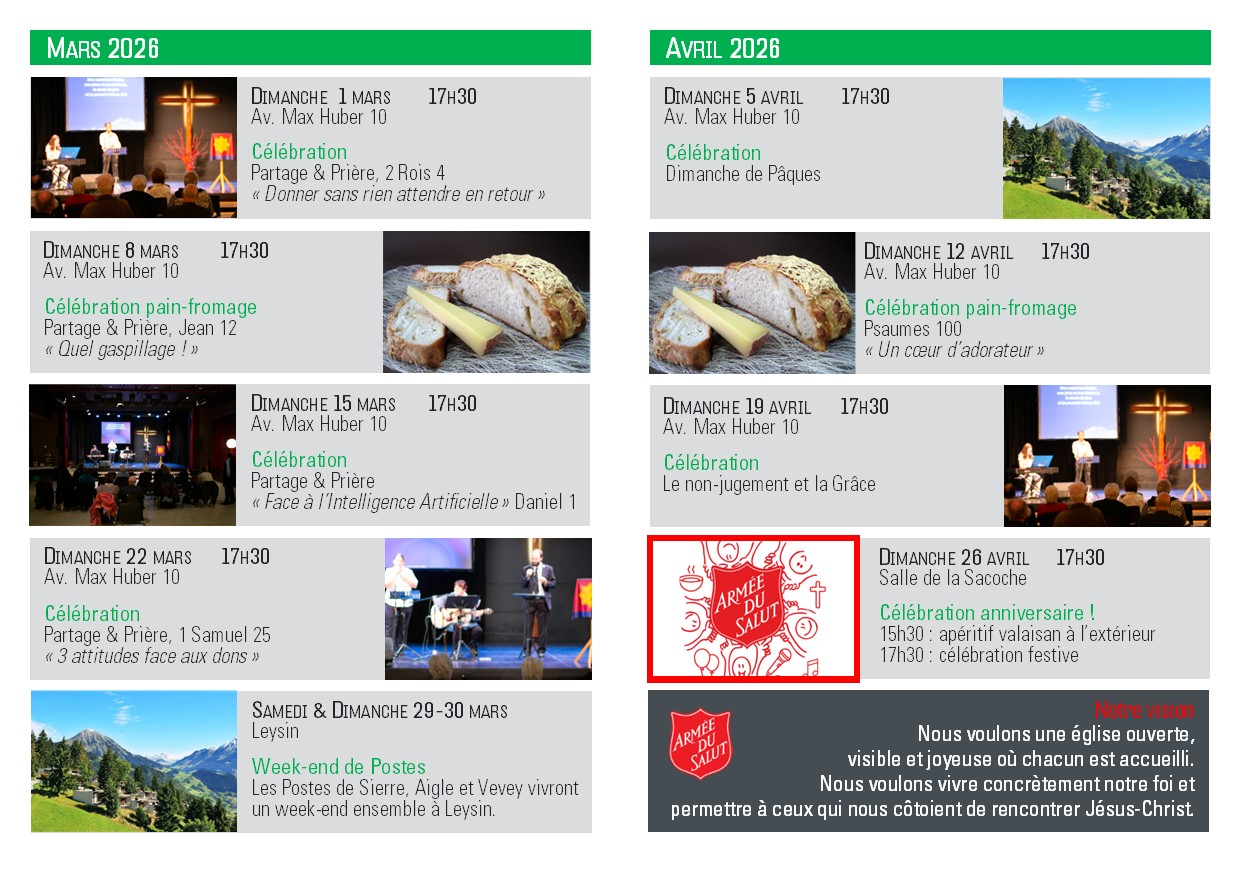 Un Week-end de fête ! Il y a 20 ans, l’Armée du Salut ouvrait à Sierre ! Viens partager notre joie !